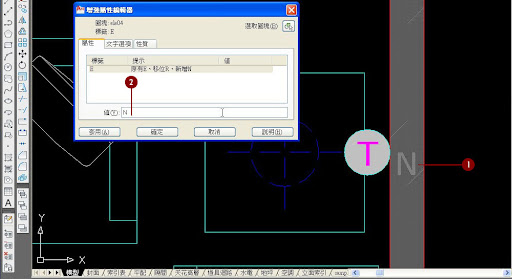 屬性值輸入 N (表示此處要新增一個電話插座)。但輸入完後發現「新增」的代號 N 顯示在牆裡面