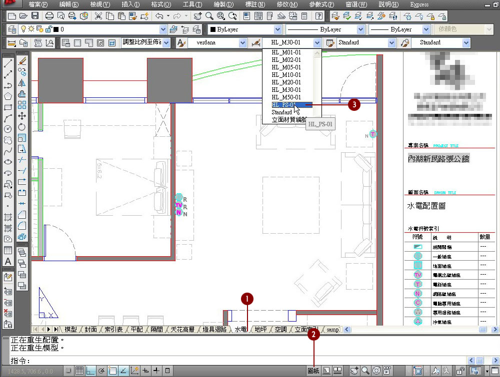 接下來用相同的方式,將水電符號一一配置好。然後就要進行尺寸標註的工作了